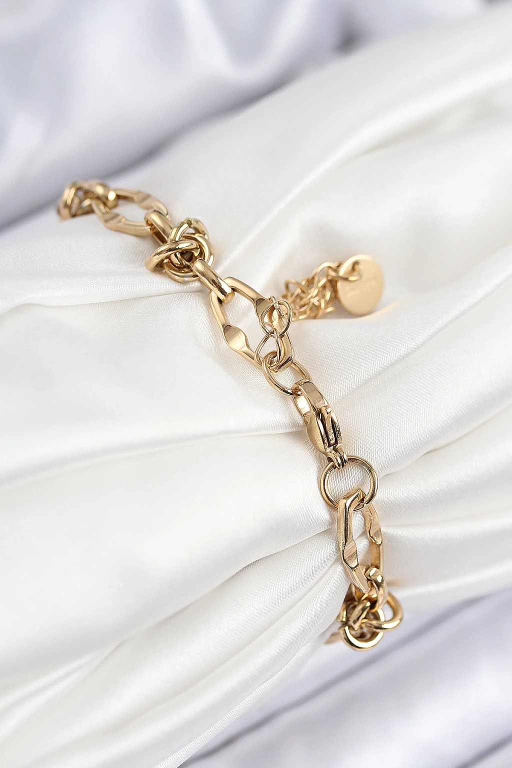 316L Çelik Gold Renk Ezme Zincir Model Kadın Kelepçe Bileklik