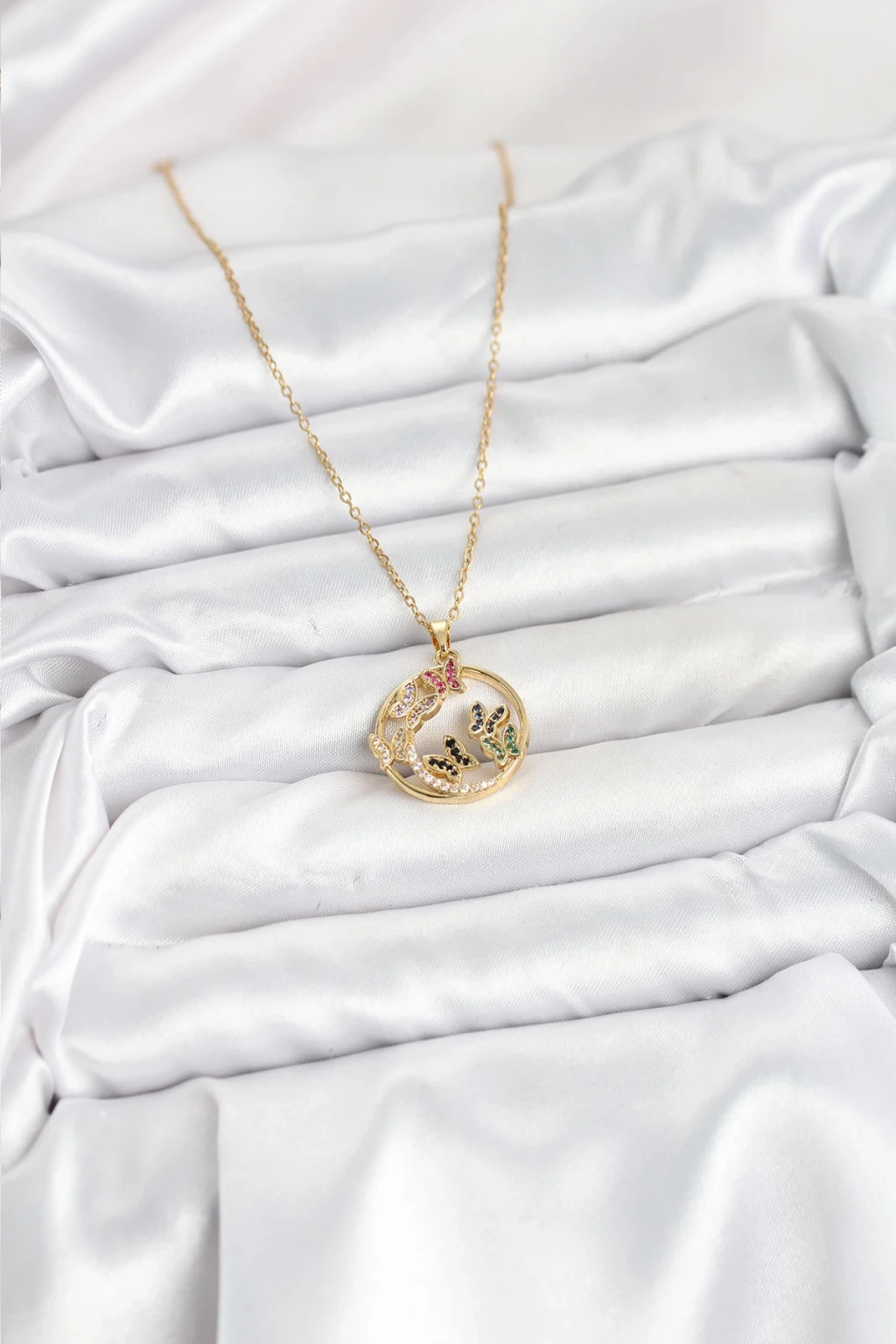 316L Çelik Zincir Gold Renk Zirkon Taşlı Kelebekli Kadın Kolye