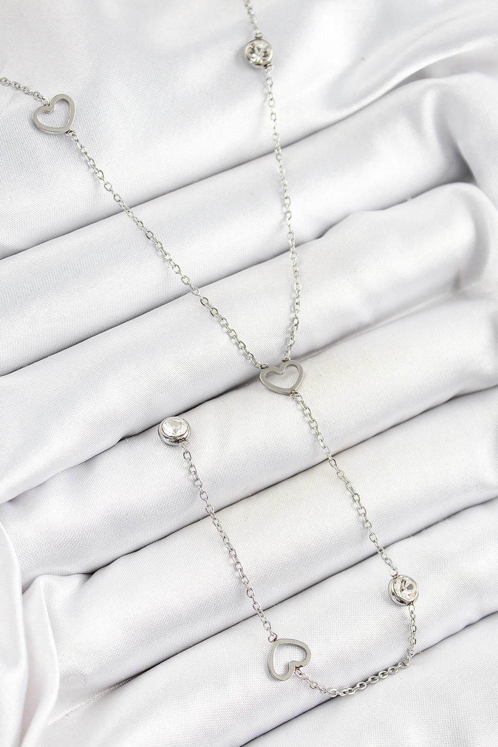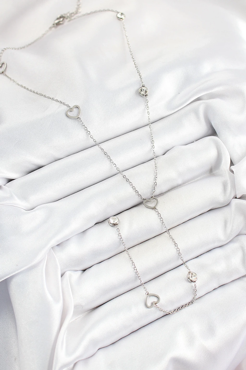 316L Çelik Zirkon Taşlı Kalp Figürlü Y Model Gümüş Renk Kadın Kolye