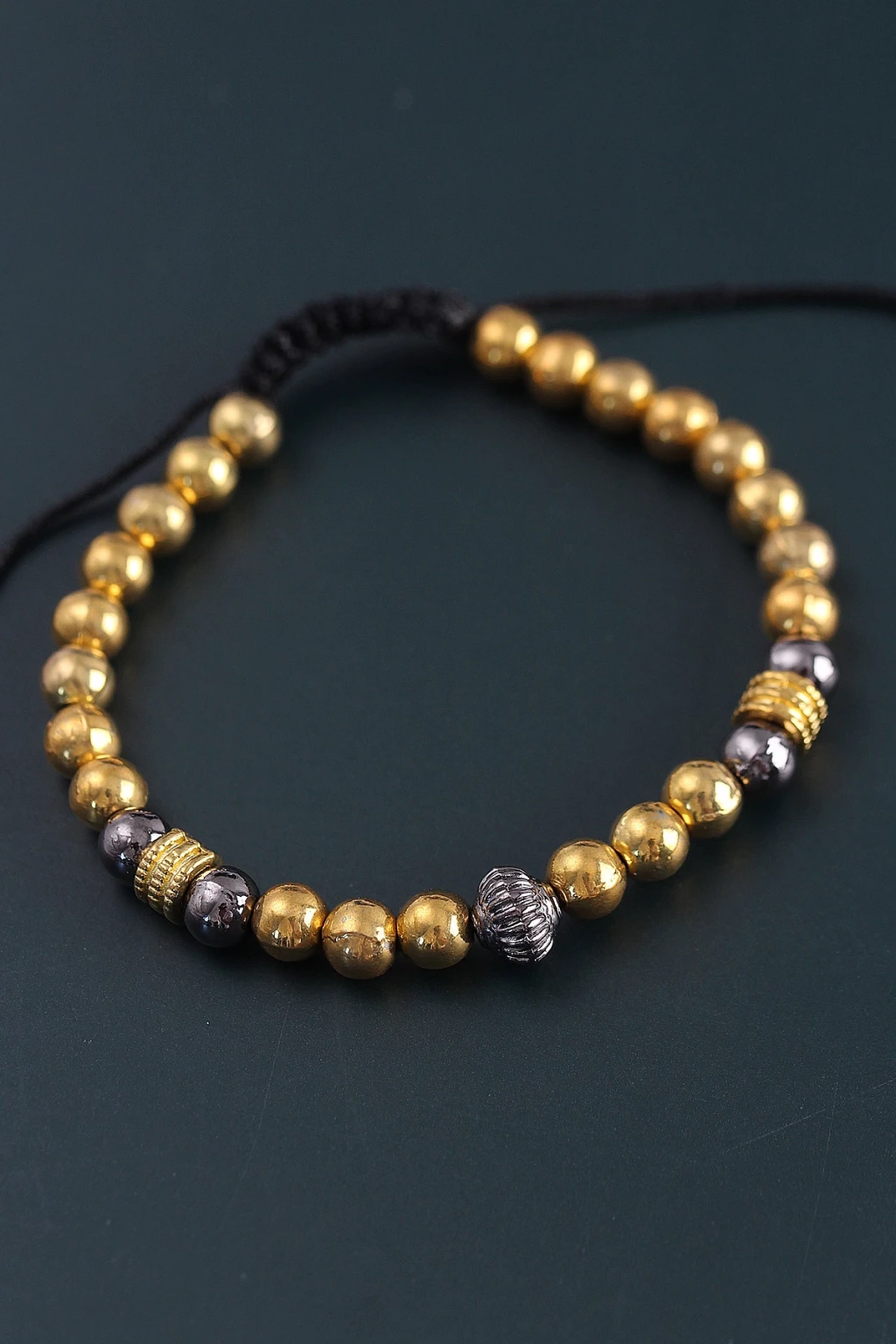 Doğal Taş Çember Model Gold Ve Füme Renk Asansörlü Erkek Bileklik