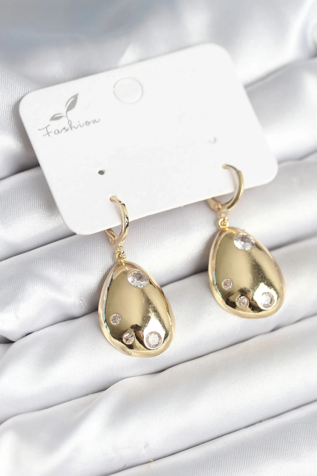 Gold Renk Pirinç Damla Model Kadın Küpe