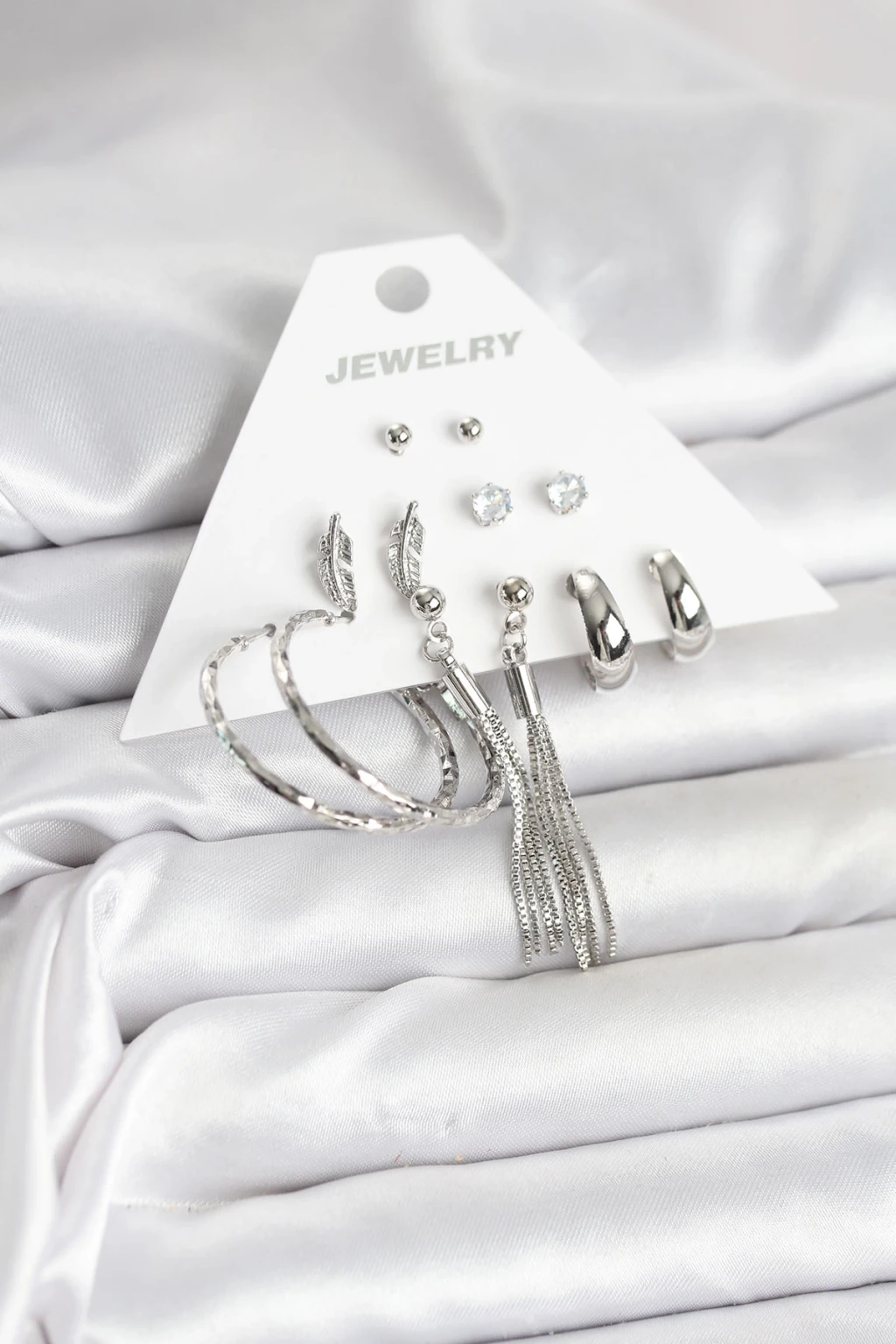 Gümüş Renk Pirinç 6 Çiftli Kadın Küpe Seti