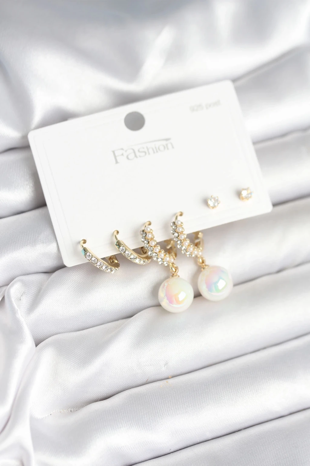 Pirinç Gold Renk İncili 925 Ayar Gümüş Çivi Kadın Küpe Seti