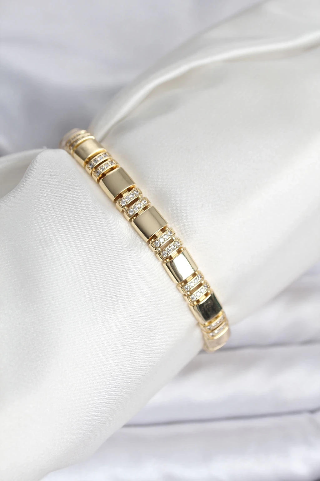 Pirinç Gold Renk Zirkon Taşlı Kadın Bileklik