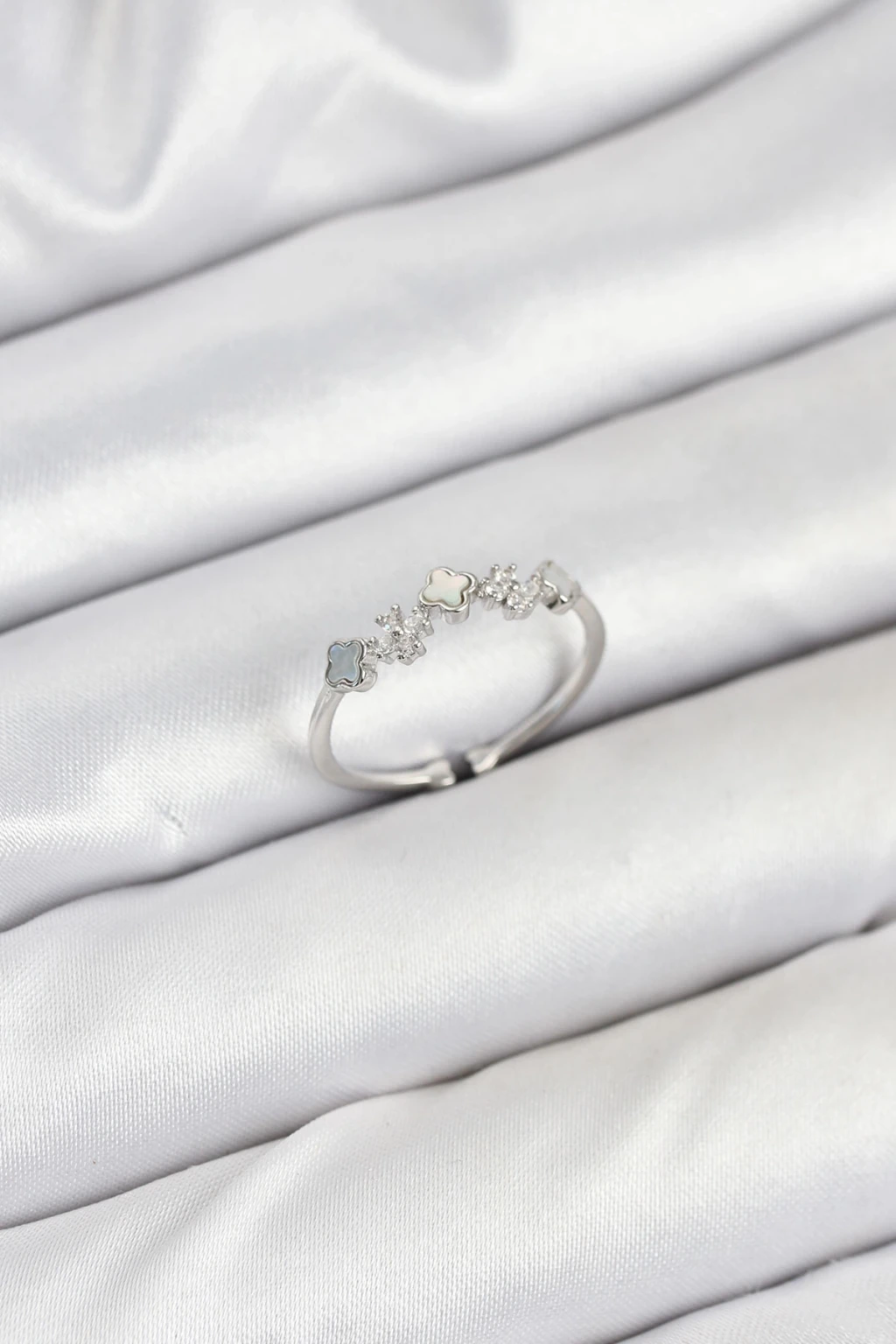 Pirinç Gümüş Renk Minimal Yonca Detaylı Kadın Yüzük