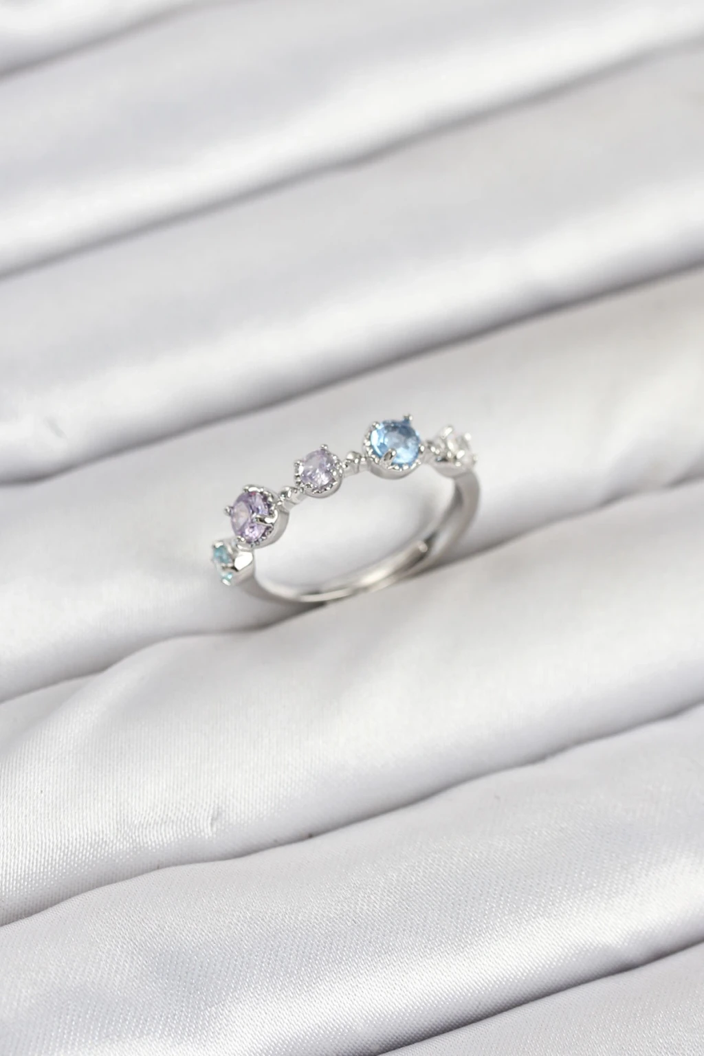 Pirinç Gümüş Renk Renkli Zirkon Taşlı Kadın Yüzük