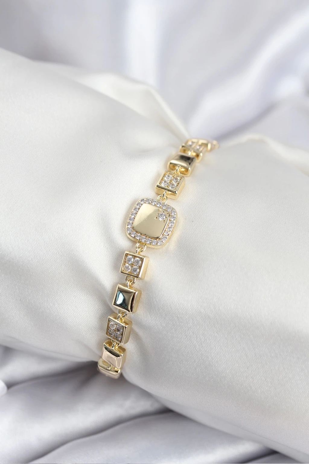 Pirinç Gold Renk Zirkon Taşlı Kadın Bileklik