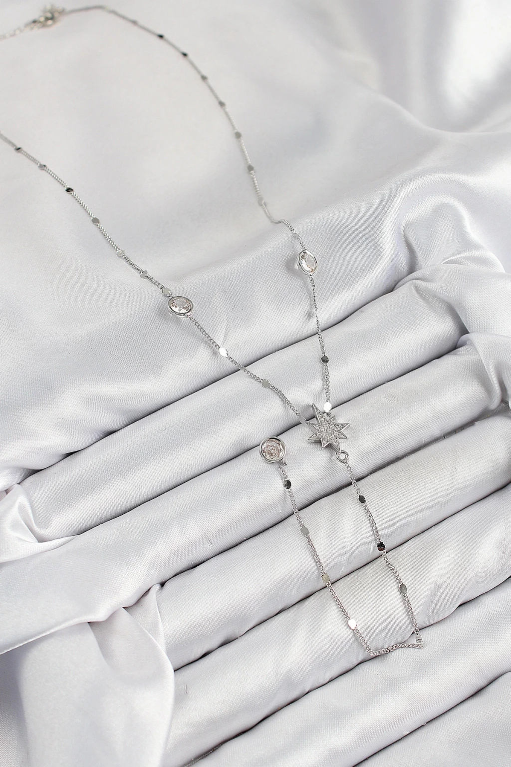 Pirinç Zirkon Taşlı Kutup Yıldızı Model Gümüş Renk Y Kolye