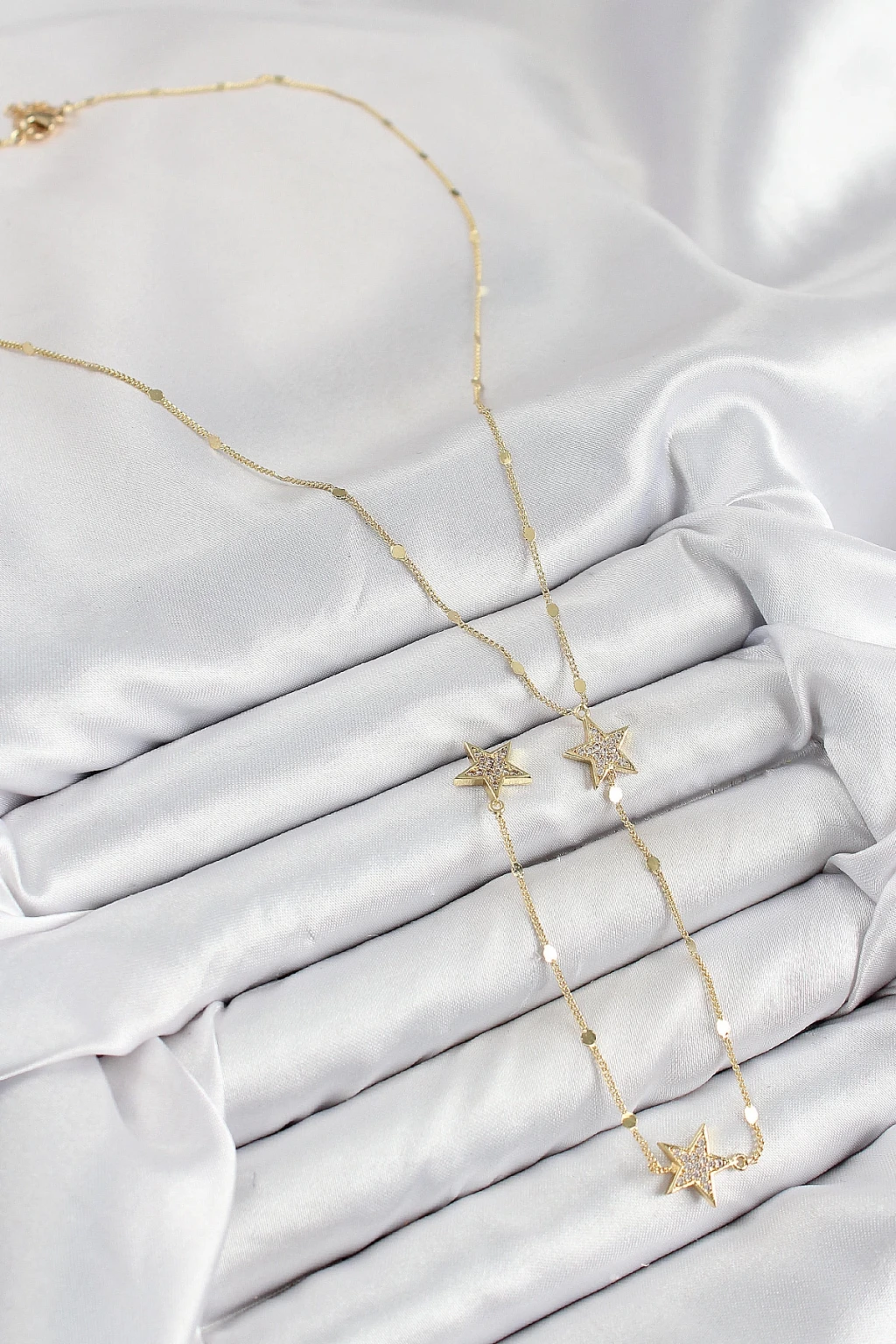 Pirinç Zirkon Taşlı Yıldız Model Gümüş Renk Y Kolye